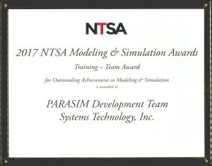 STI is proud to announce that the PARASIM Development Team has been awarded the Training - Team Award in the 2017 National Training and Simulation Association’s Modeling & Simulation Awards, for Outstanding Achievement in Modeling & Simulation, for development of the PARASIM Free Fall Maneuvering Module.